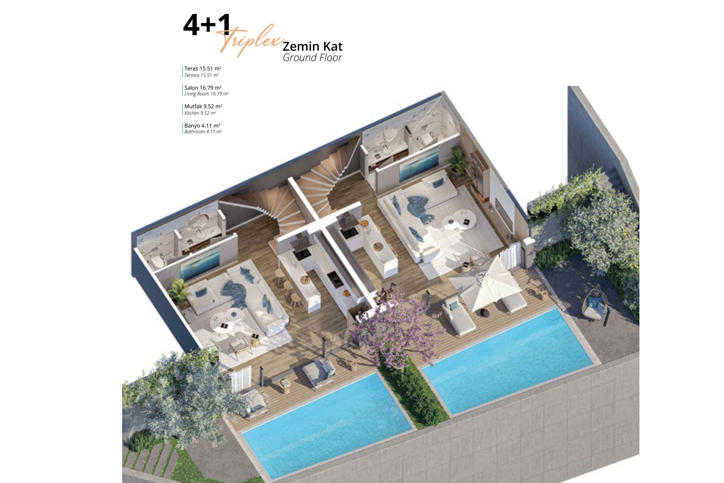 Hemen teslim, denize sadece birkaç dakika uzaklıkta ikiz villalarla konfor ve huzur bir arada.
