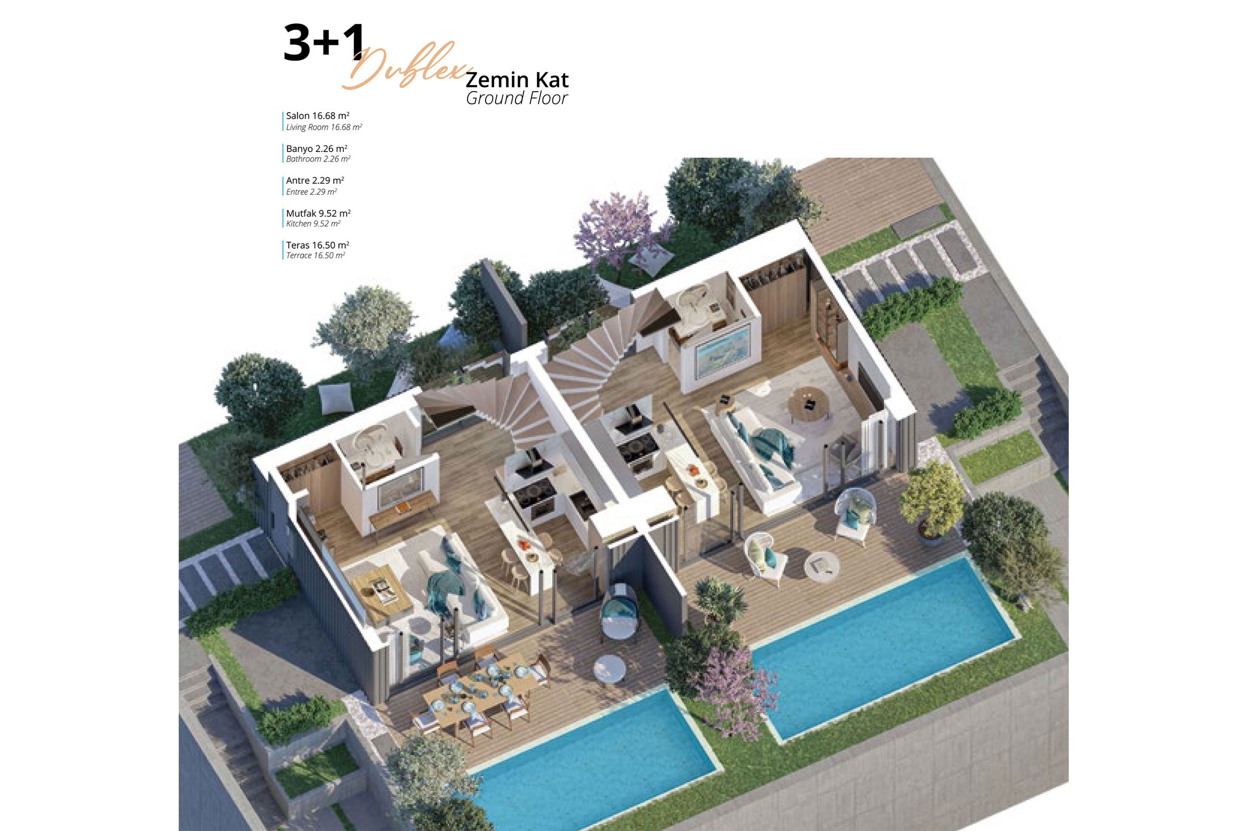 Hemen teslim, denize sadece birkaç dakika uzaklıkta ikiz villalarla konfor ve huzur bir arada.