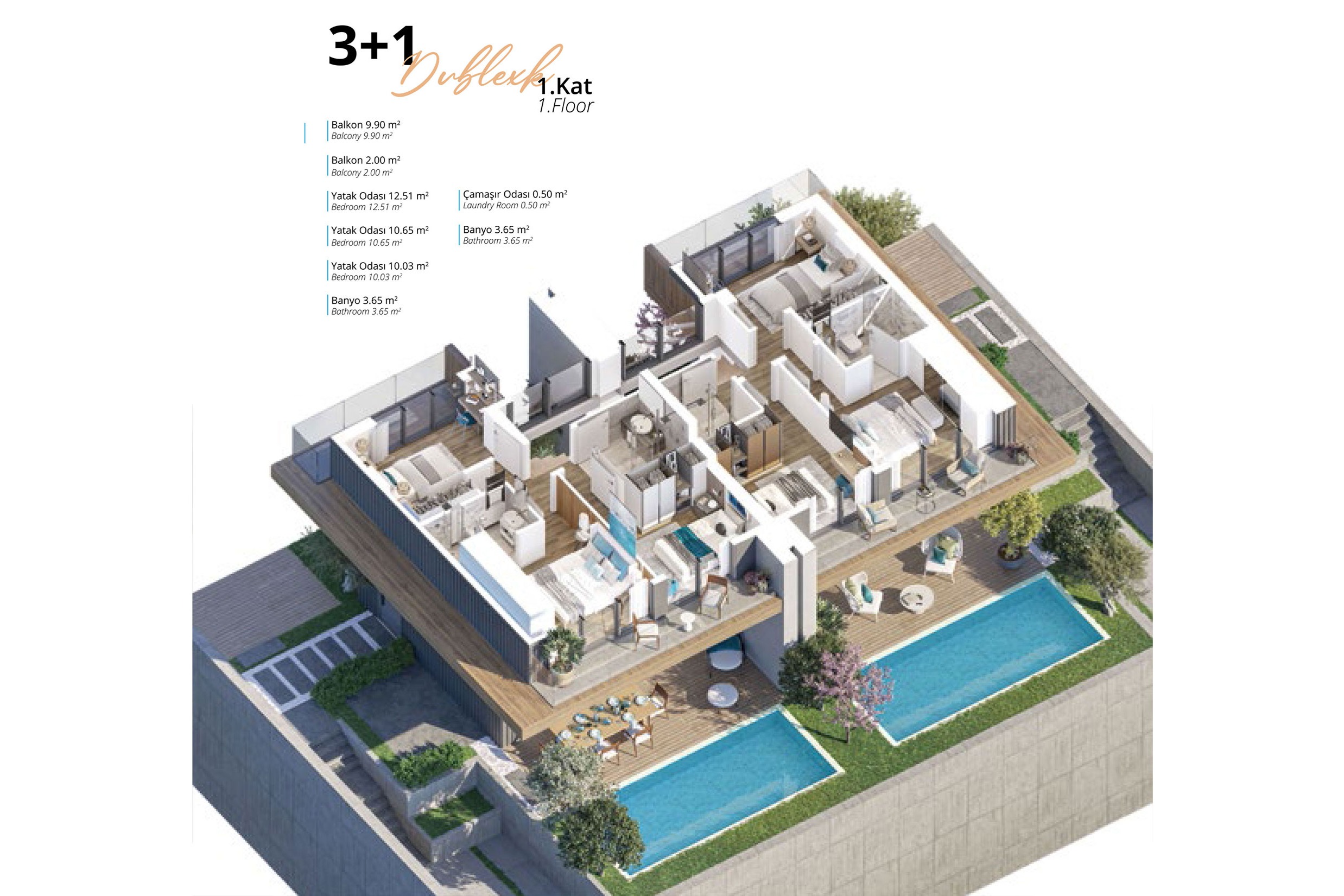 3 + 1 | 3 Banyo | 3 WC | 126 m2